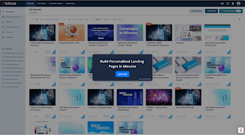 Launch more campaigns in a week than most teams do in a quarter. Type a prompt, and Folloze builds landing pages, emails, and ads — in minutes.
