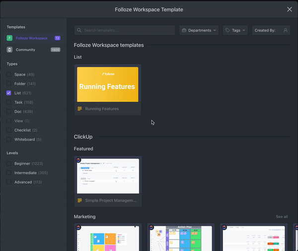 Select the "Running Features" template, click on "Use Template", name your project, and click on "Use Template" again.