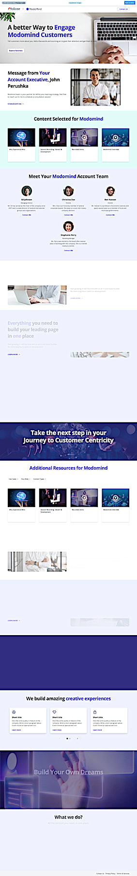 Empowering a productive and effective modern marketing team requires simplicity and agility. With Folloze, any marketer can quickly build sophisticated buyer experiences in minutes, not weeks — with no coding experience required.