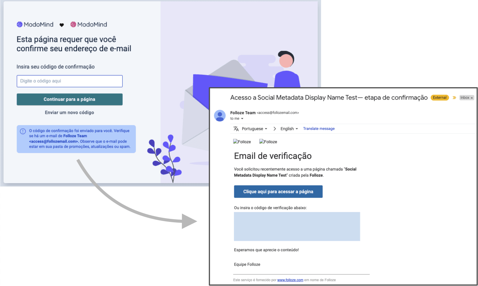 *A Portuguese 2FA Page upon requesting email (left) and the triggered 2FA email (right).