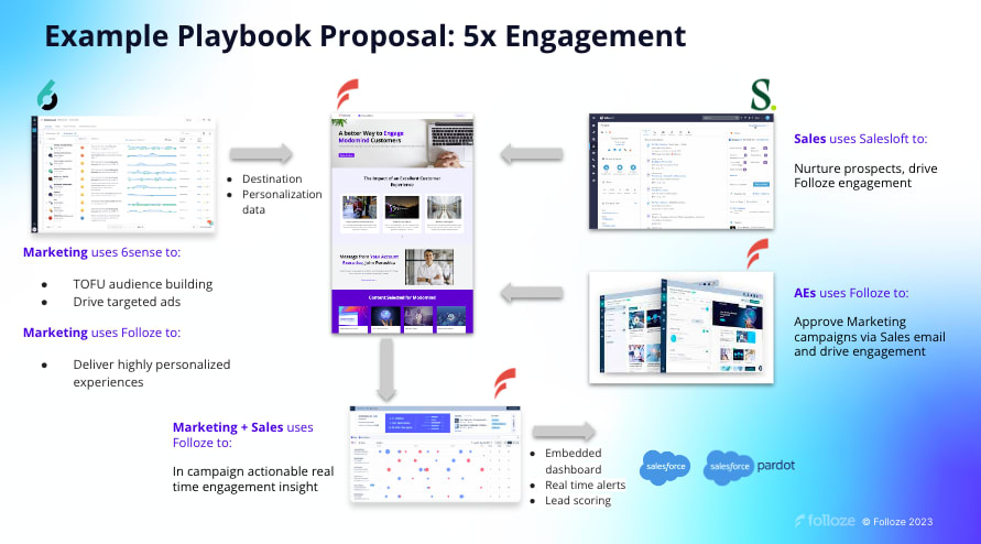 The Folloze + 6sense solution fuses the buyer intent and predictive data of 6sense with the dynamic customer engagement and sales orchestration of the Folloze Buyer Experience Platform to help any marketer launch targeted, omnichannel campaigns across the entire buyer journey. Using real-time data to understand buyer behavior, the integration identifies ideal target accounts and delivers contextual buying journeys at scale based on their intent, buying stage, industry, and specific use case.